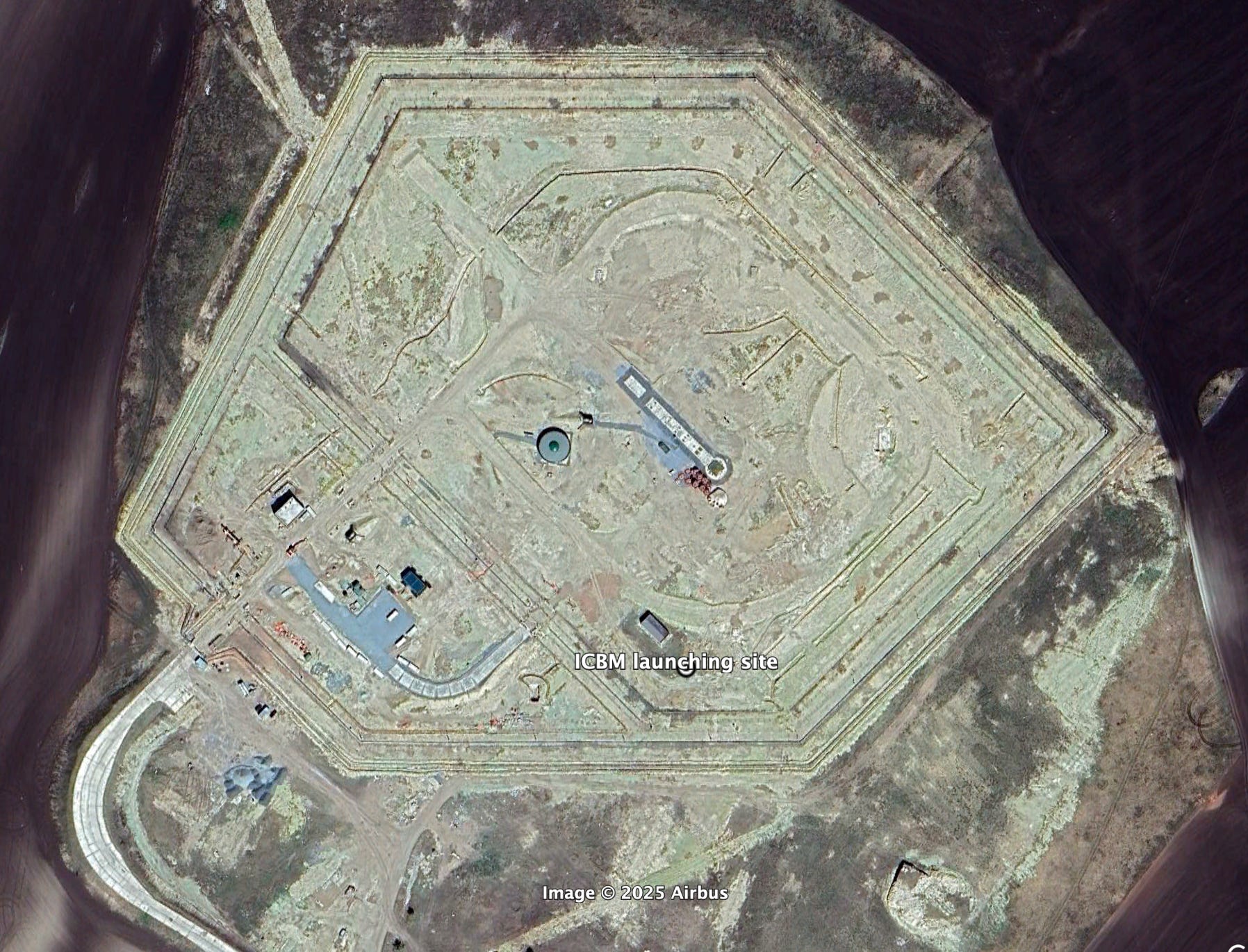 Image: Google Earth image (2024) of one of the silos at Uzhur (55.034722, 89.729583) prepared for the deployment of Sarmat.